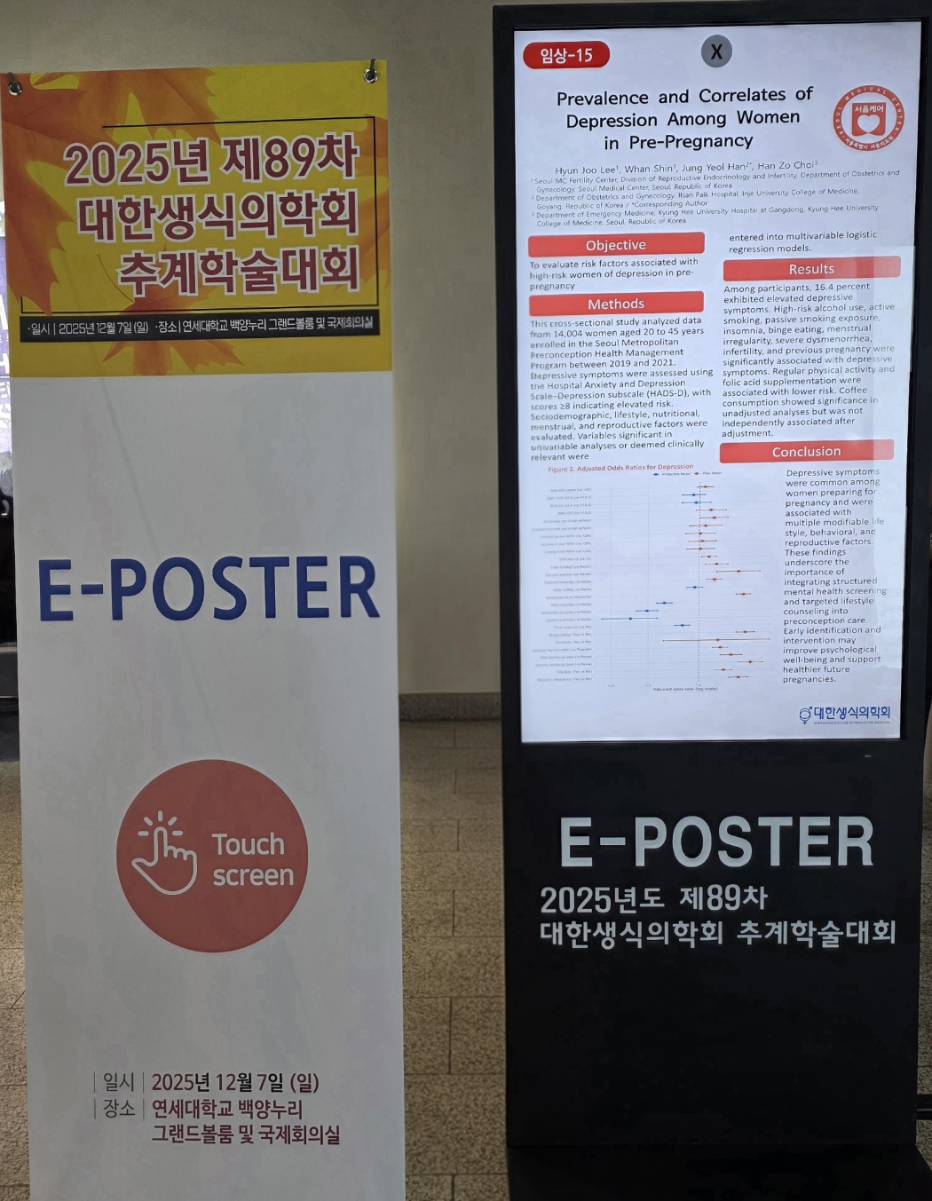 서울의료원 가임센터 의료진도 이번 학술대회에 참석하여 ‘Prevalence and Correlates of Depression Among Women in Pre-Pregnancy’라는 주제로 E-poster를 발표하여 연구 결과를 공유하였습니다.